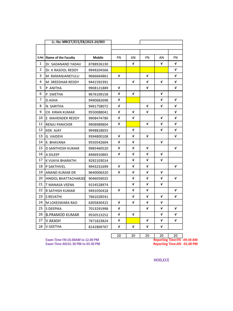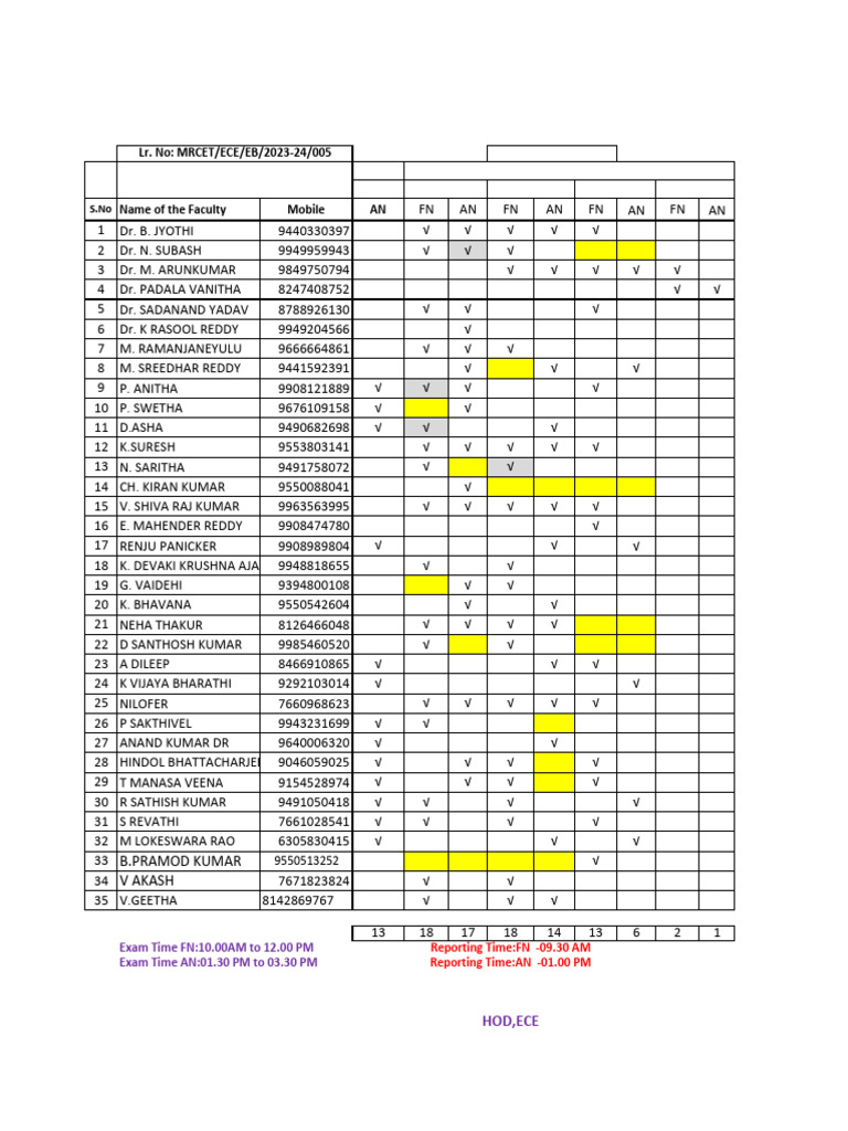 Ece Dept Faculty List For Invigilation Chart April 2019 | Download Free ...
