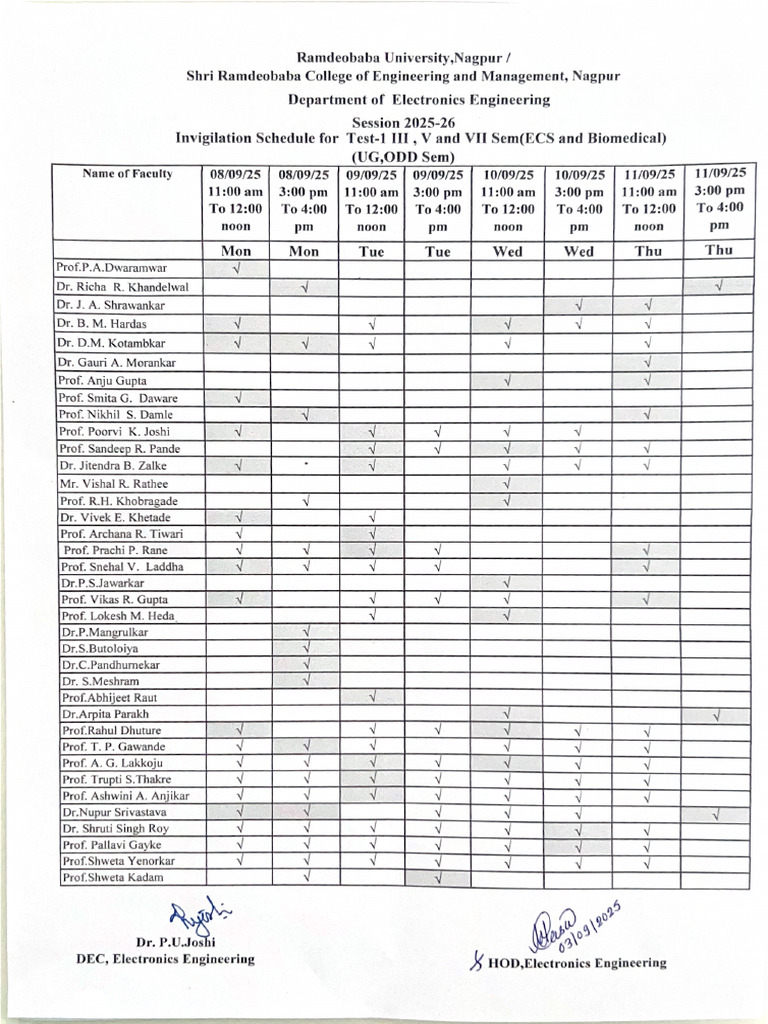 Revised Invigilation Duty Schedule | Sarabhai Institute of Science and ...