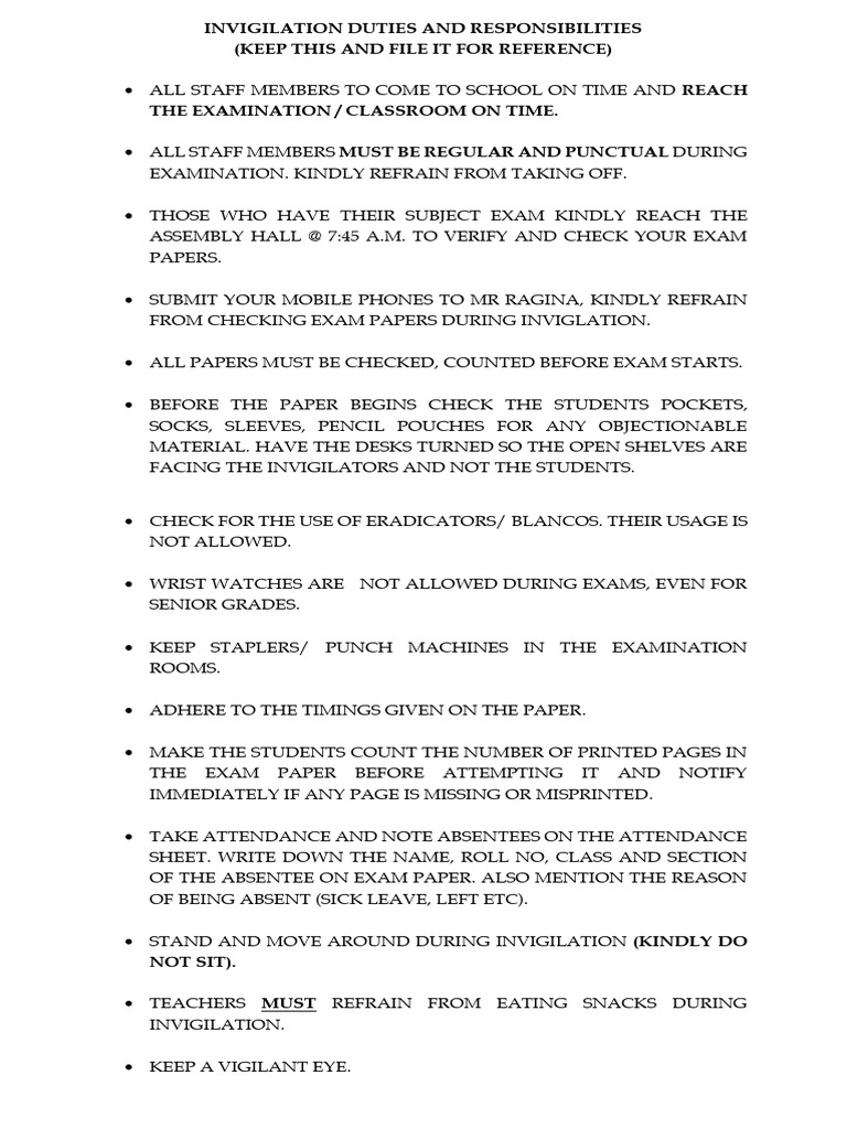 Duties of Invigilators | PDF