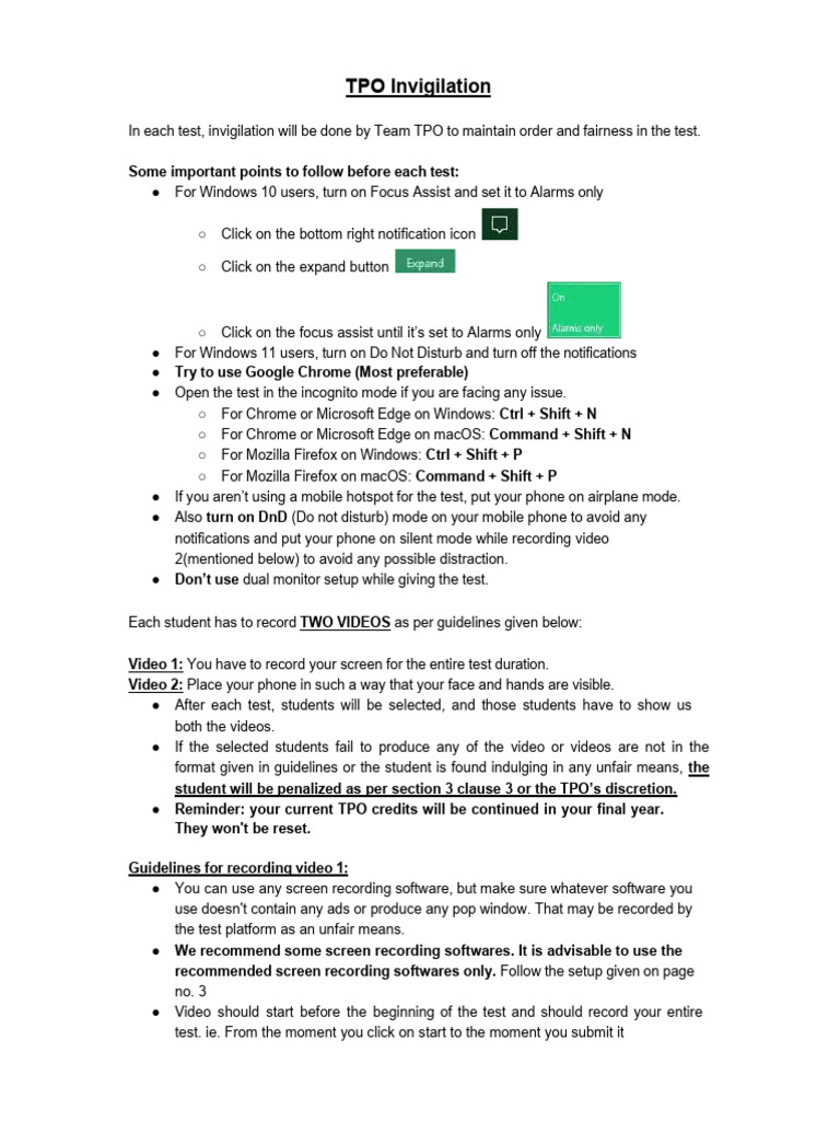 TPO Invigilation Guidelines-2 | PDF | Operating System Families ...