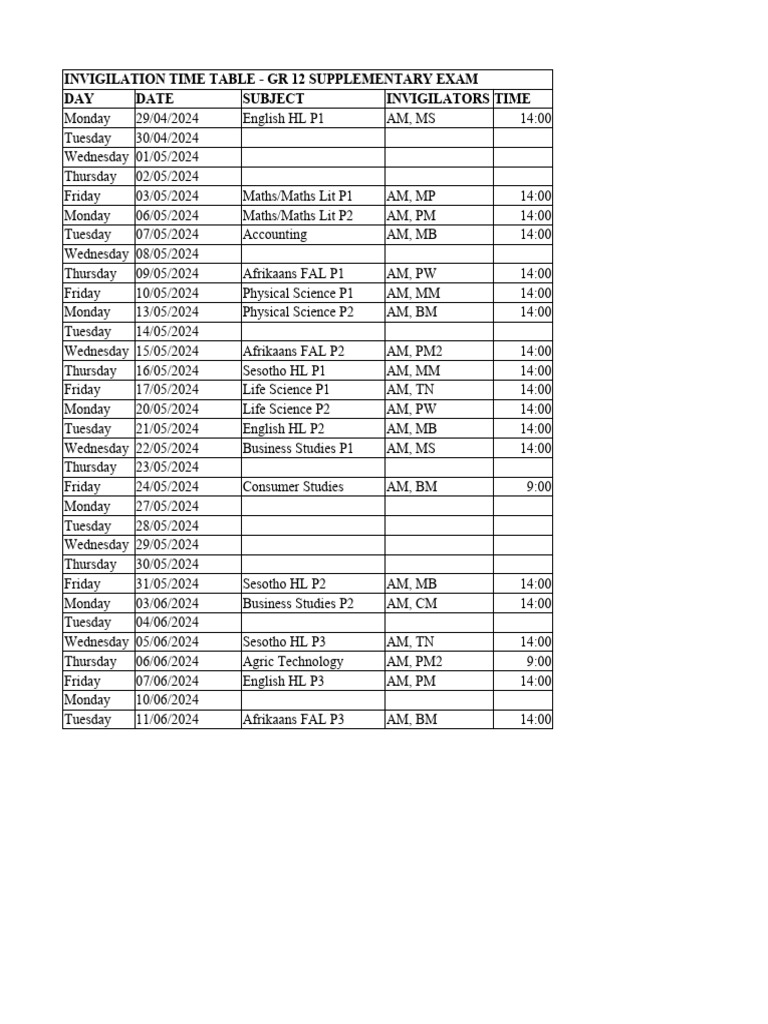 2024 JUNE EXAM Invigilation Timetable - 98312 - 2024 JUNE EXAM ...