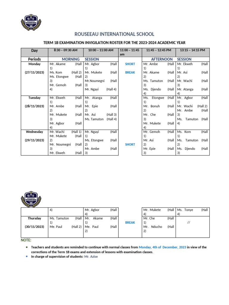 TERM 1B Invigilation Timetable 2023-2024 | PDF