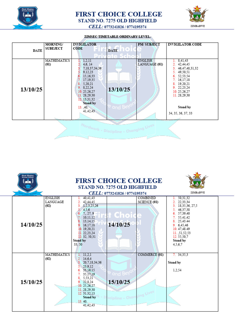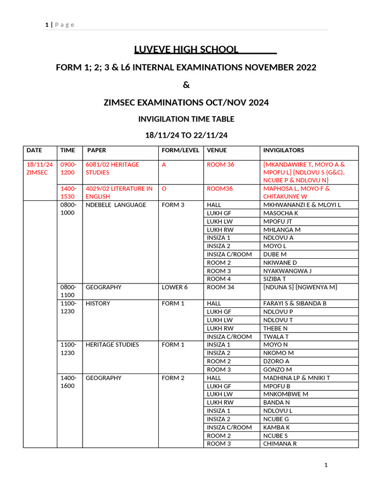 ZIMSEC Invigilation Timetable 2025 | PDF | Chess | Chess Theory