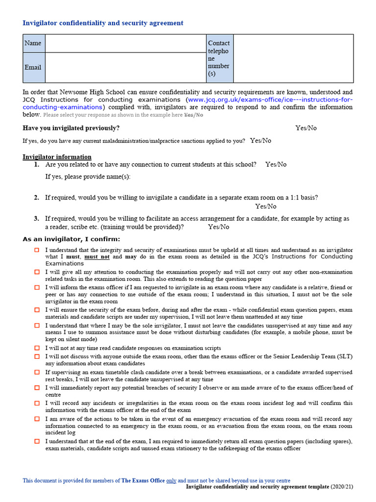 Invigilator Confidentiality Agreement | PDF | Cyberspace