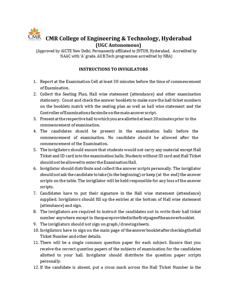 Instructions To Invigilators | PDF | Wellness | Science & Mathematics