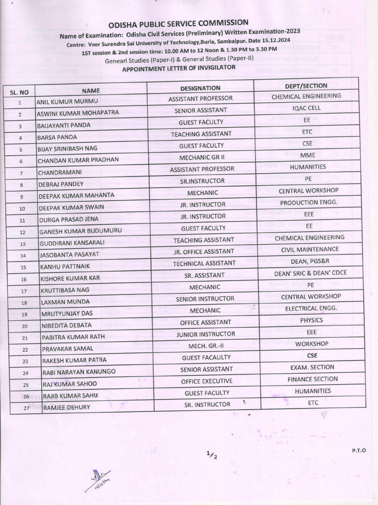 PET List of Invigilators For 2023-2024 Harmattan Sem. Exam From AD For ...