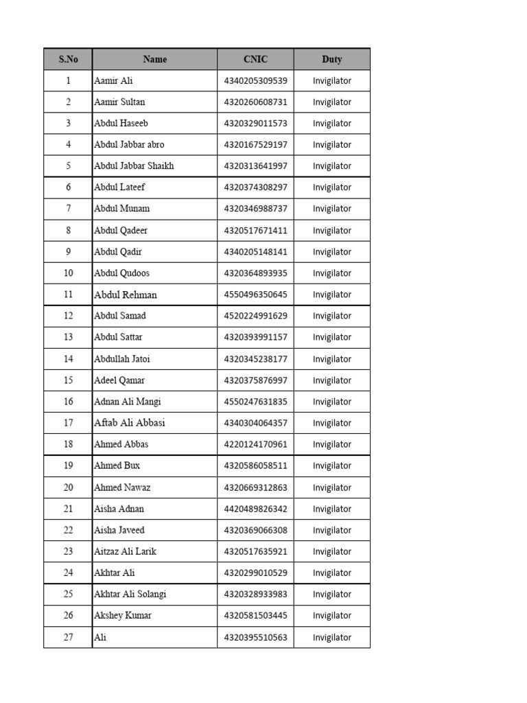 Invigilators' List Larkana Matric July 02, 2025 | PDF