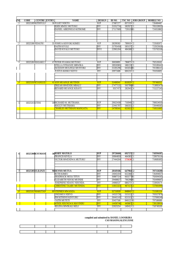 Masongaleni Zone 2025 Kcse Supervisors and Invigilators List (2) - 1 | PDF