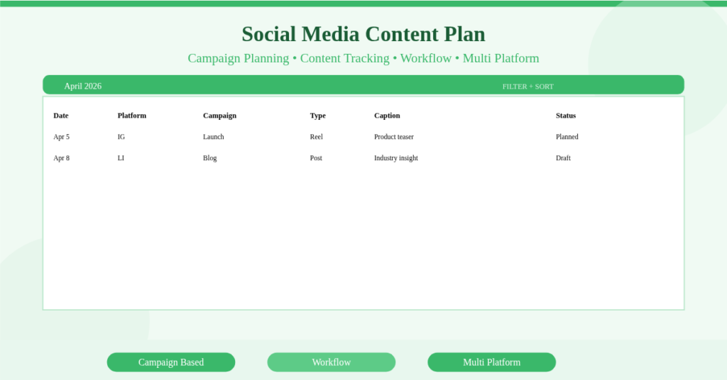 Social Media Content Plan Excel Template Free