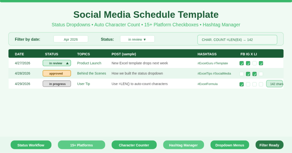 Social Media Schedule Template | ExcelGuru.io