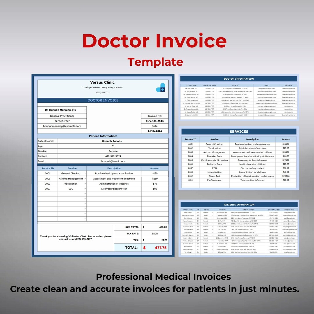 Doctor Invoice Template | Google Sheets | Patient Billing & Medical ...