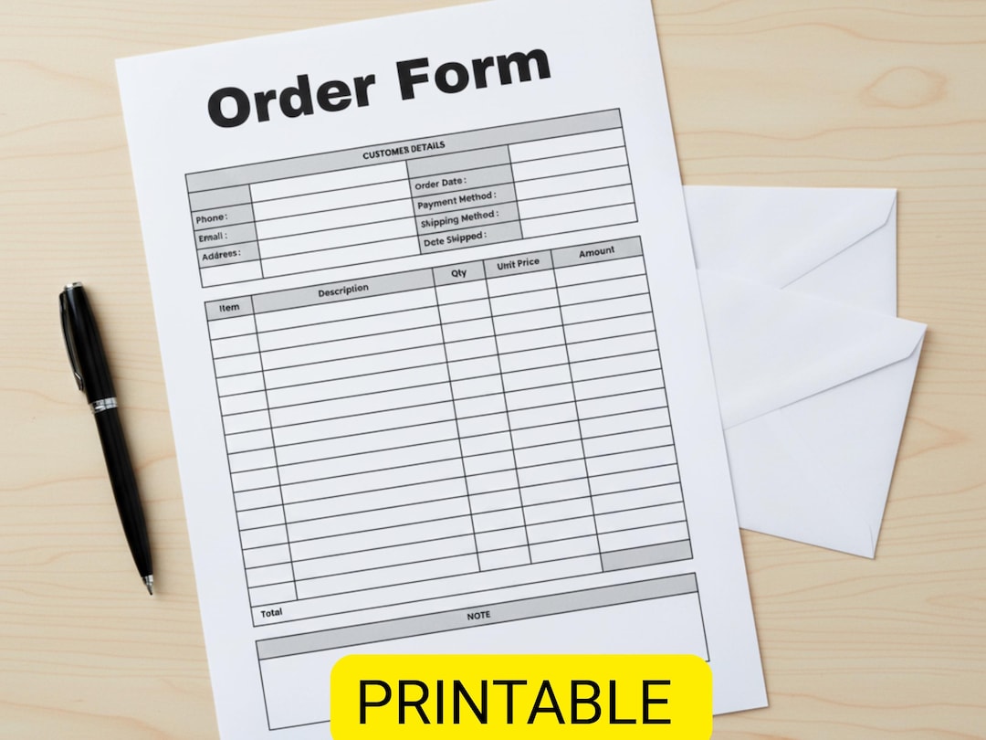 Printable Order Form Template, Small Business Invoice Sheet, Craft Shop ...