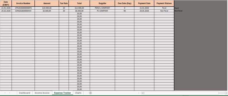 Business Finance Tracker Excel Template - Invoice , Income & Expense ...