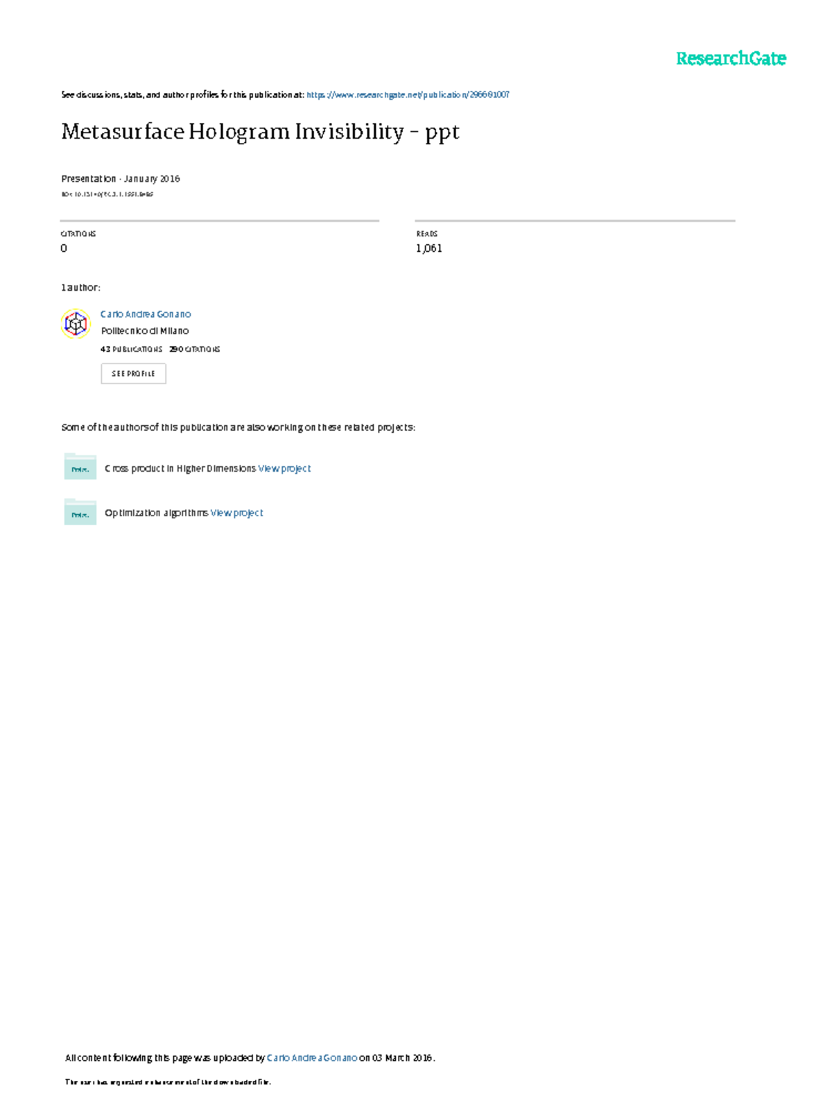 Metasurface Hologram Invisibility-ppt - See discussions, stats, and ...