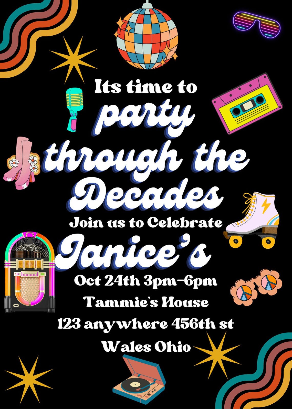 Decades Party Invitation | Retro Throwback Birthday Invite | Through ...