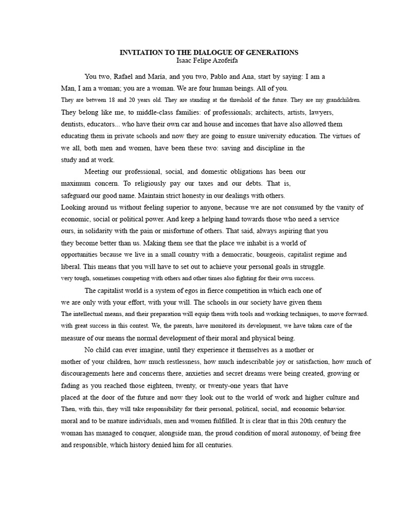 Invitation To The Dialogue of The Generations by Isaac Felipe Azofeifa ...
