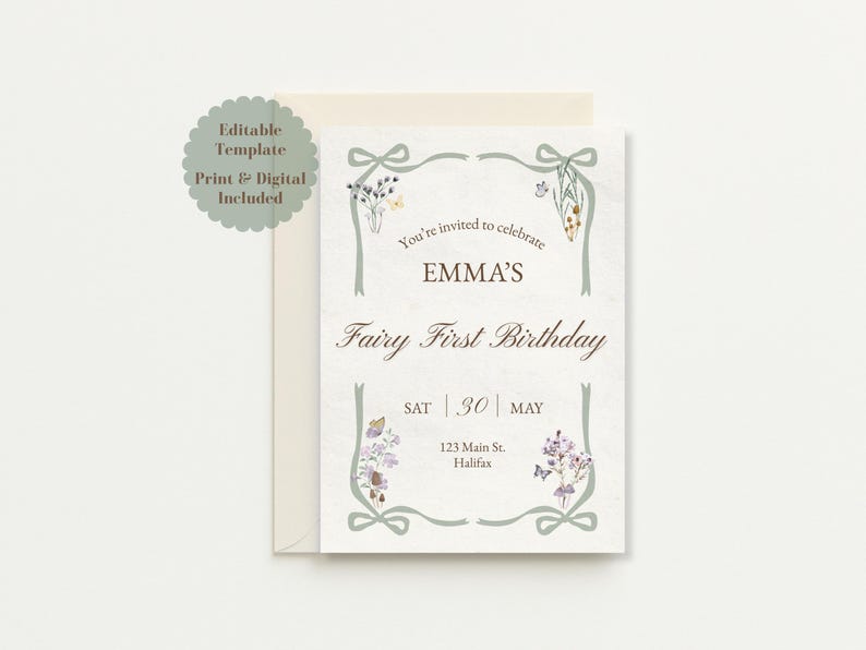 Fairy First Birthday Invitation | Whimsical Mushroom Editable Template ...