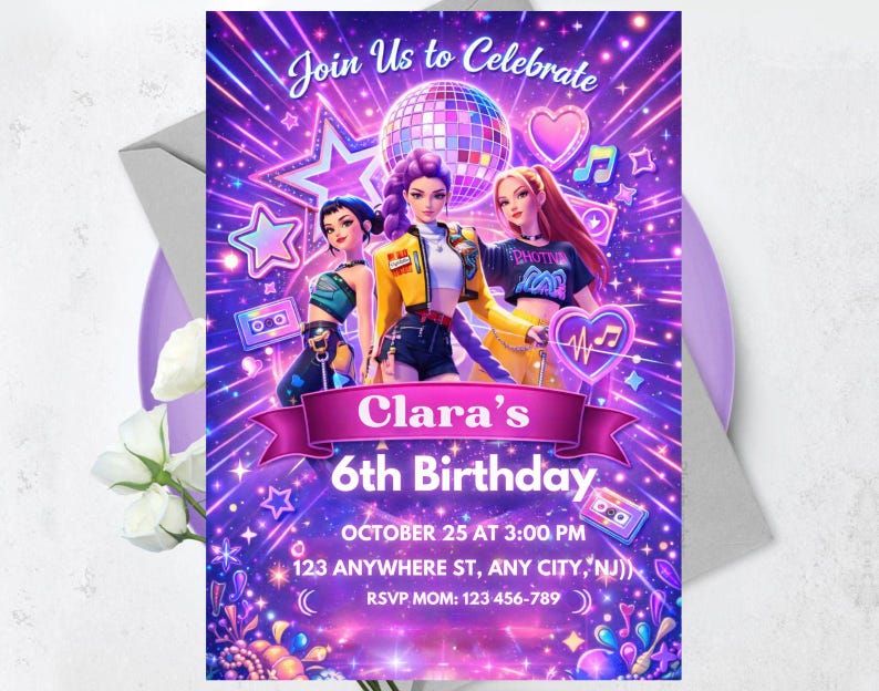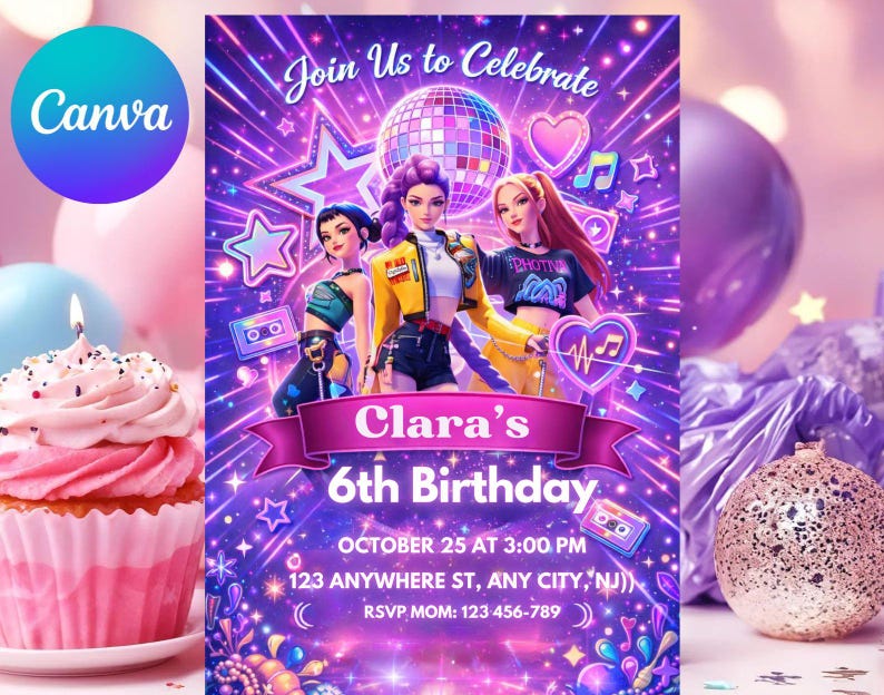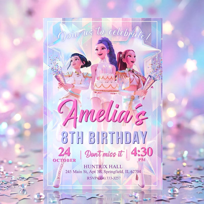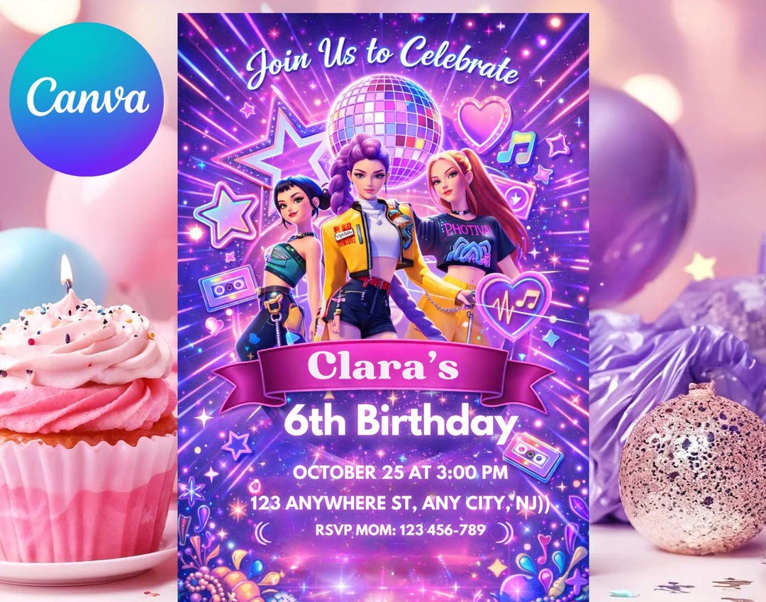 Editable Kpop Demon Hunters Birthday Invitation Template,canva Huntrix ...
