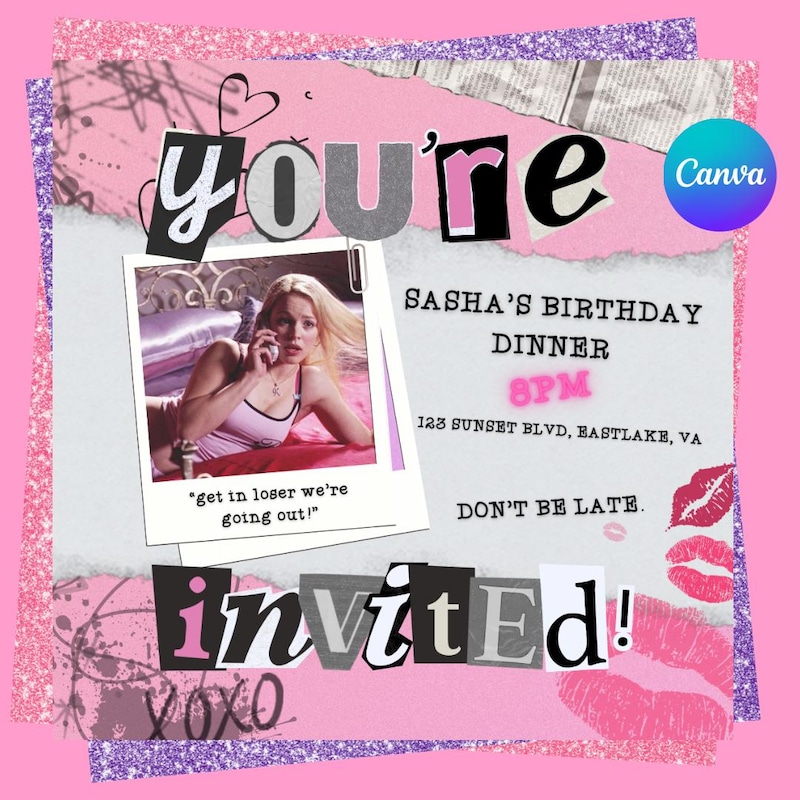 90s Birthday Invitation Template, Pink Retro Y2K Party Invite (digital ...