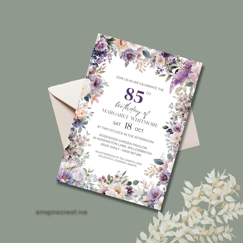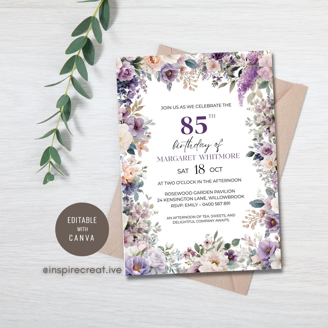 Elegant 85th Party Invitation Printable| Editable Canva Template ...