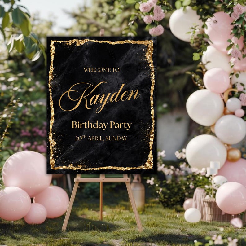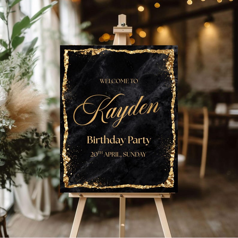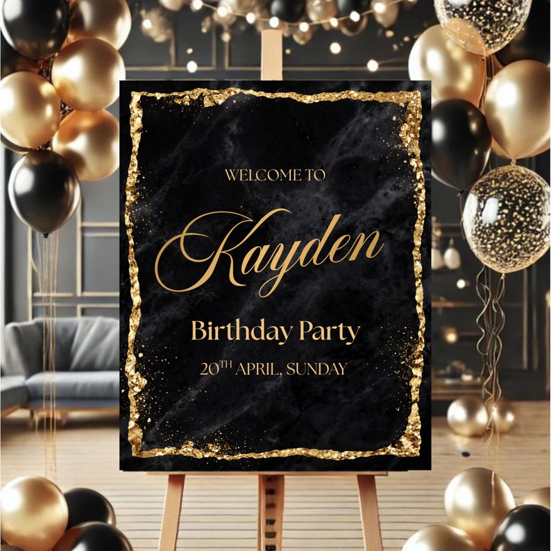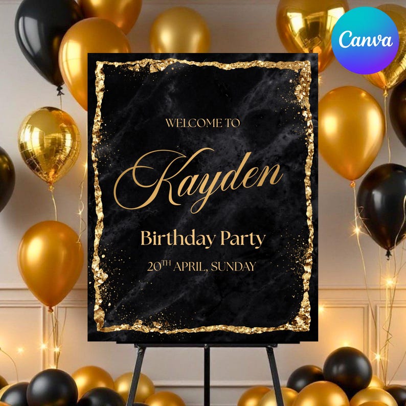 Black Gold Birthday Invitation, Modern Editable Canva Template (20th ...