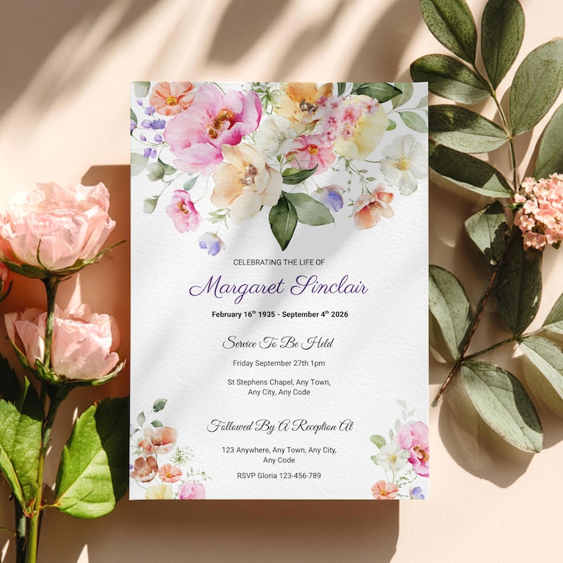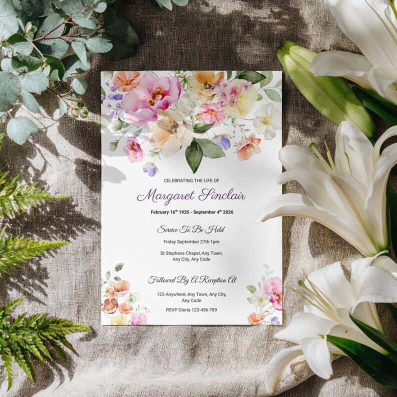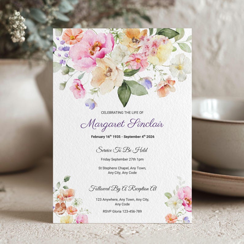 Wildflower Celebration of Life Invitation Template, Printable Floral ...