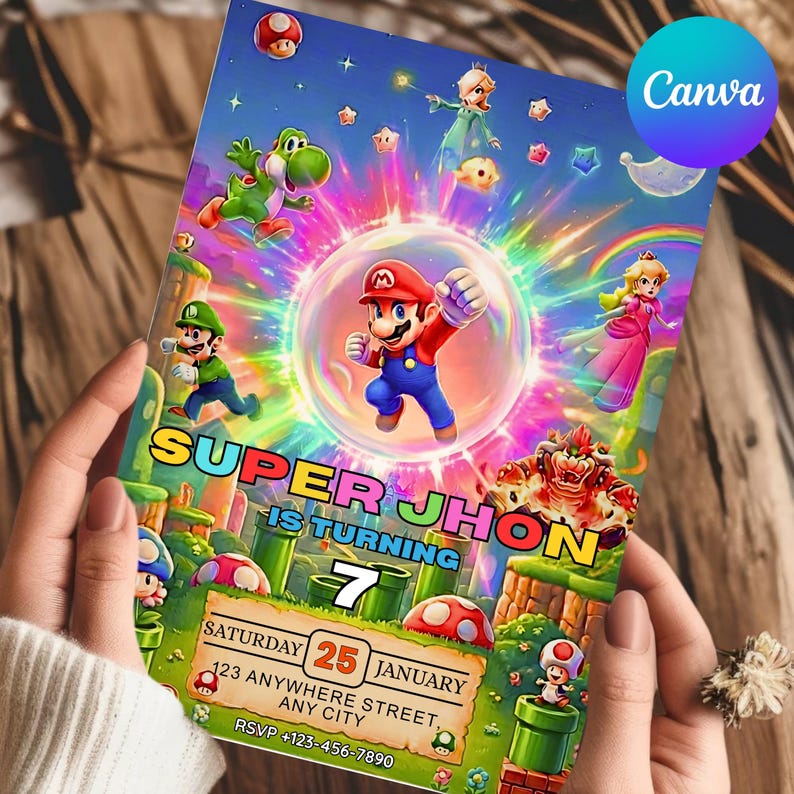Super Mario Galaxy Birthday Invitation, Awesome Mario Party Invite ...