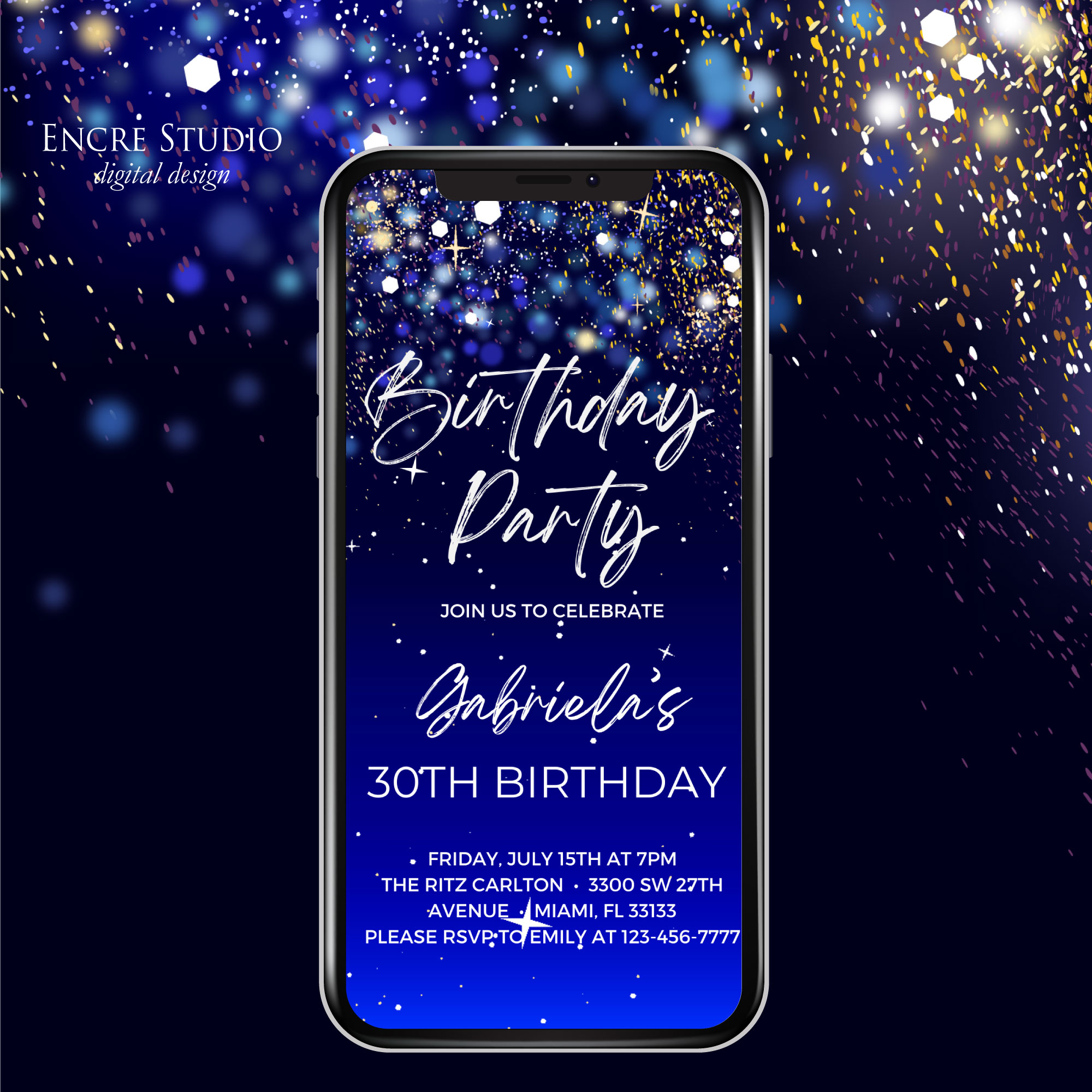 Video Birthday Invitation with Shimmering Stars - Encre Studio