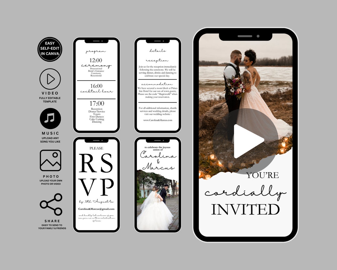 Animated Wedding Invitation Template: Photo & Music, RSVP (canva) - Etsy