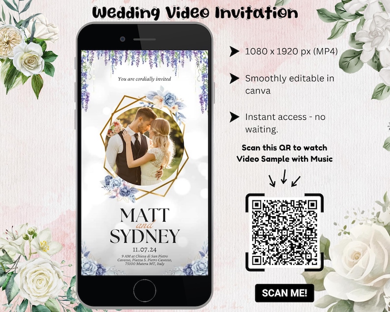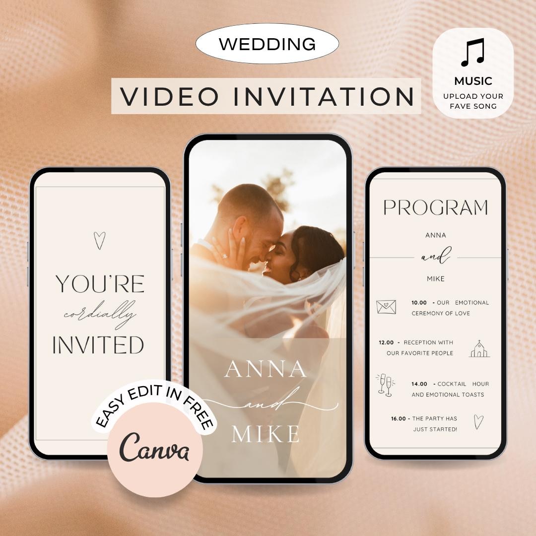 Wedding Video Invitation Canva Template, Animated Wedding Invite With ...