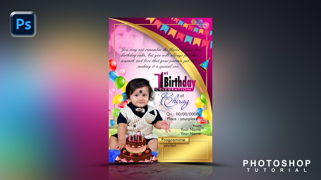 Photoshop tutorial || invitation card making ideas| || bday invitation ...