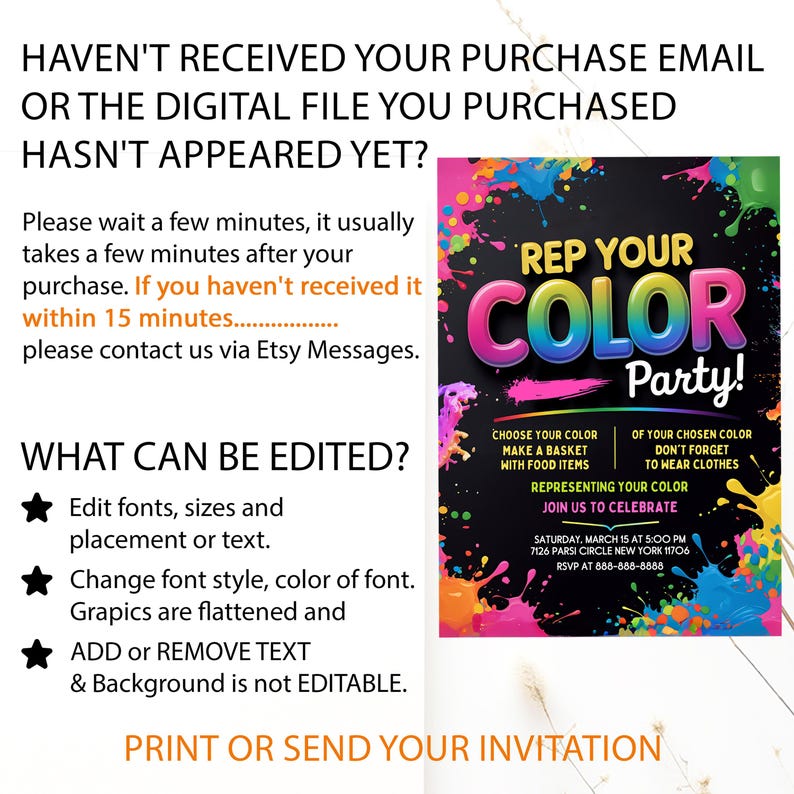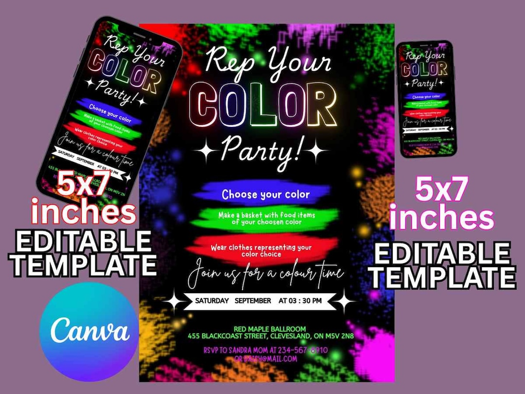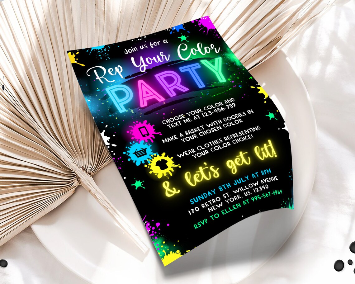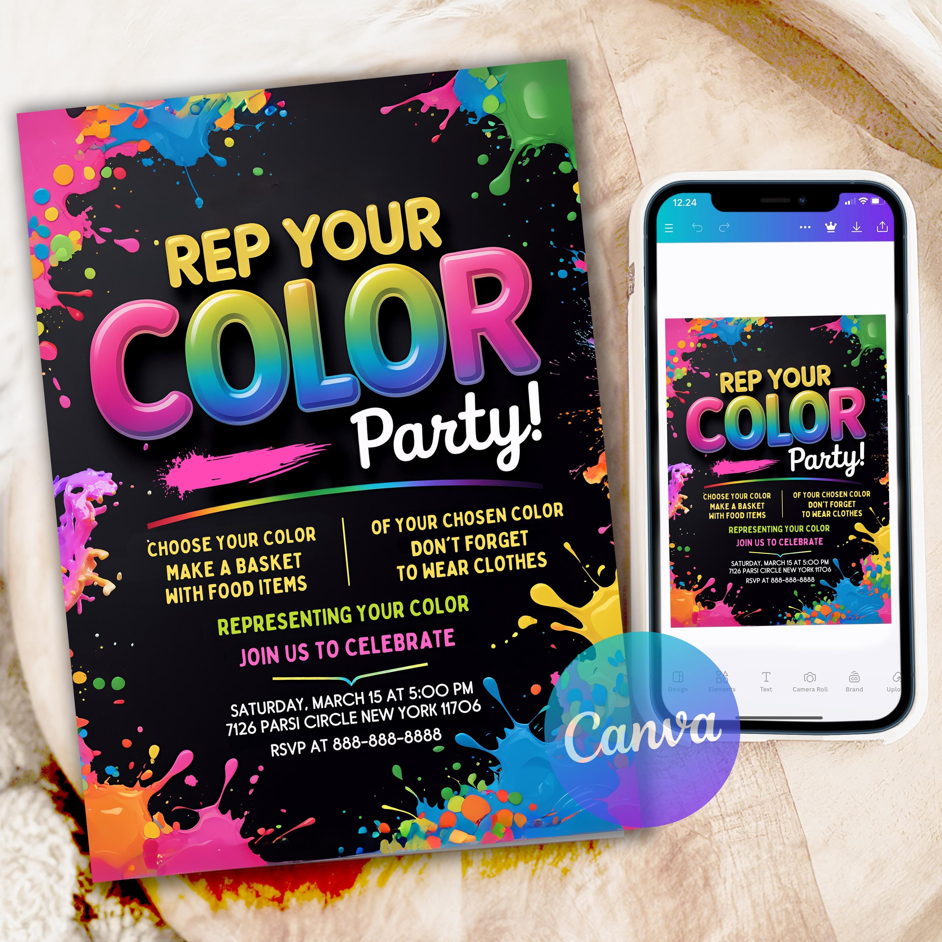 Editable Birthday Invitation, Rep Your Color Invitation, Color Theme ...