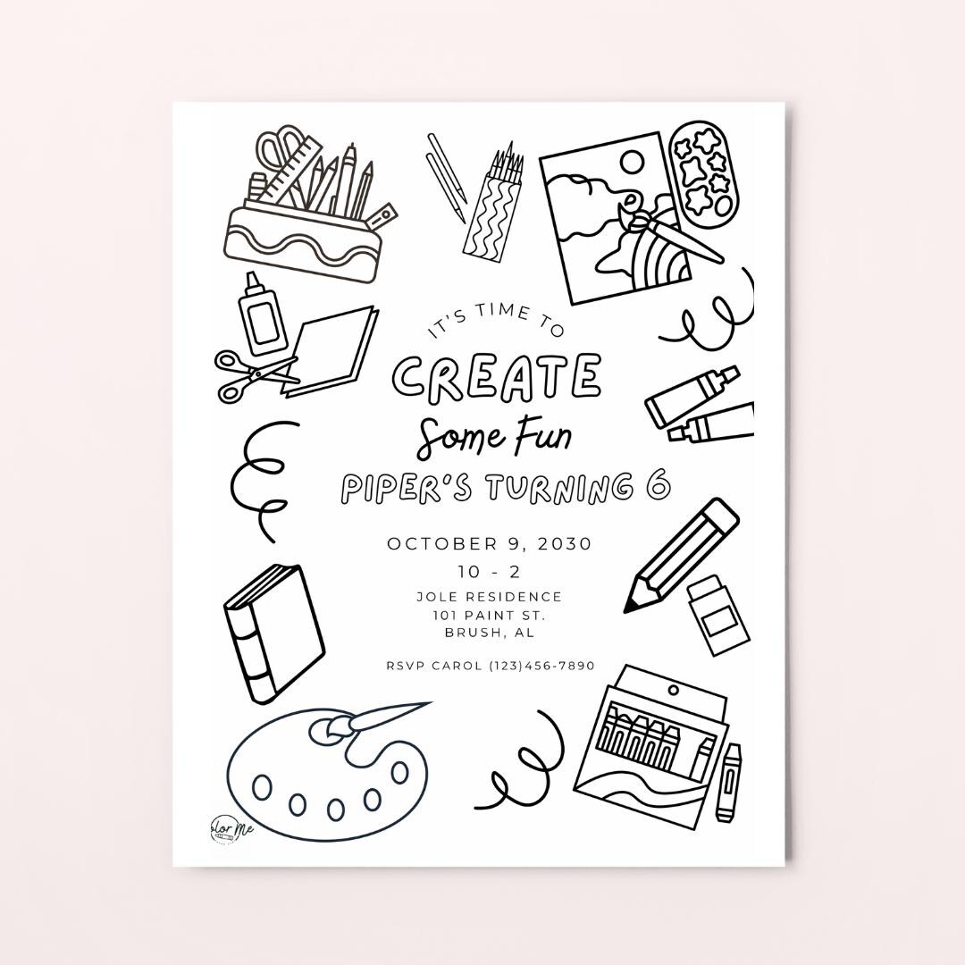 Printable Kids Birthday Party Invitation Coloring Page Digital Download ...