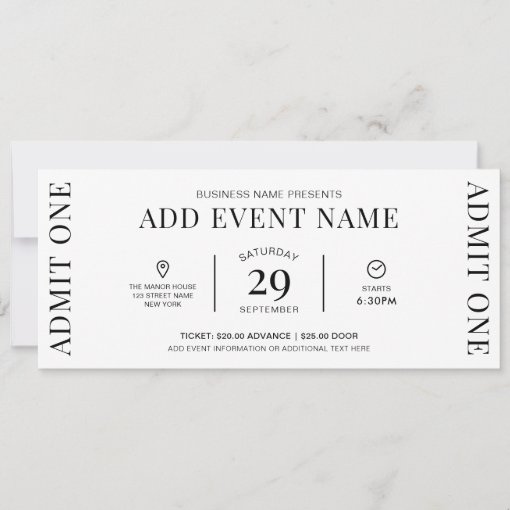 Event Ticket Company Logo Admit One Entry Pass Invitation | Zazzle