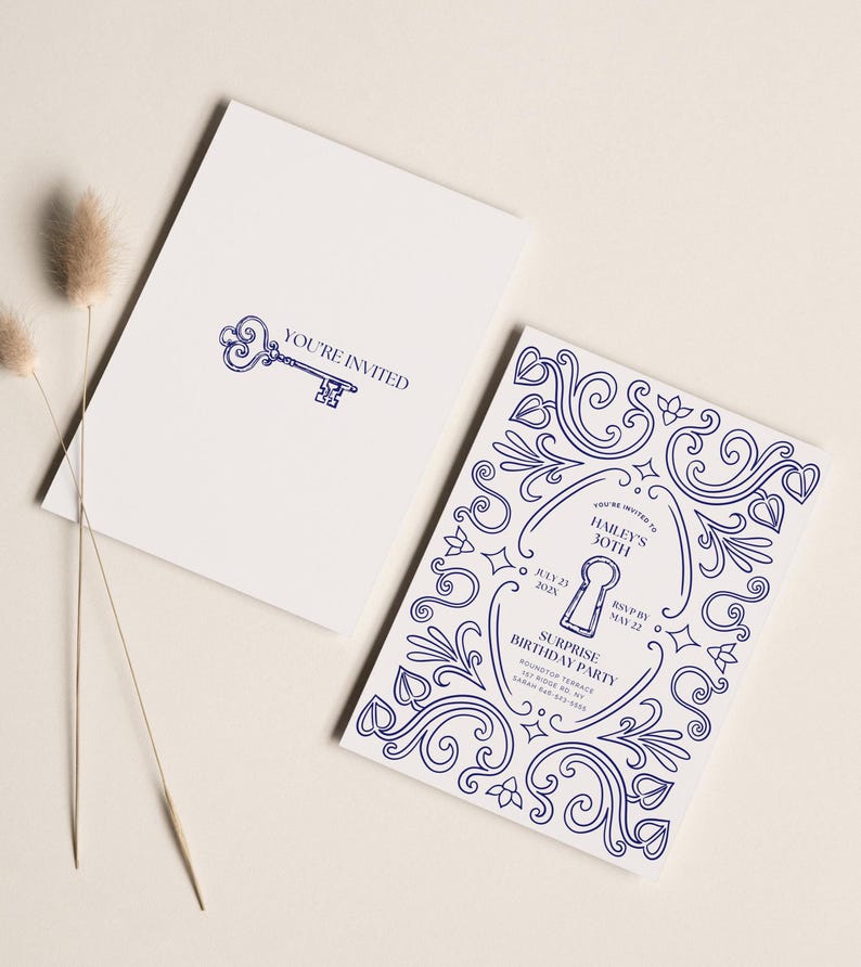 Elegant Vintage Wedding Invitation with Key Embellishment