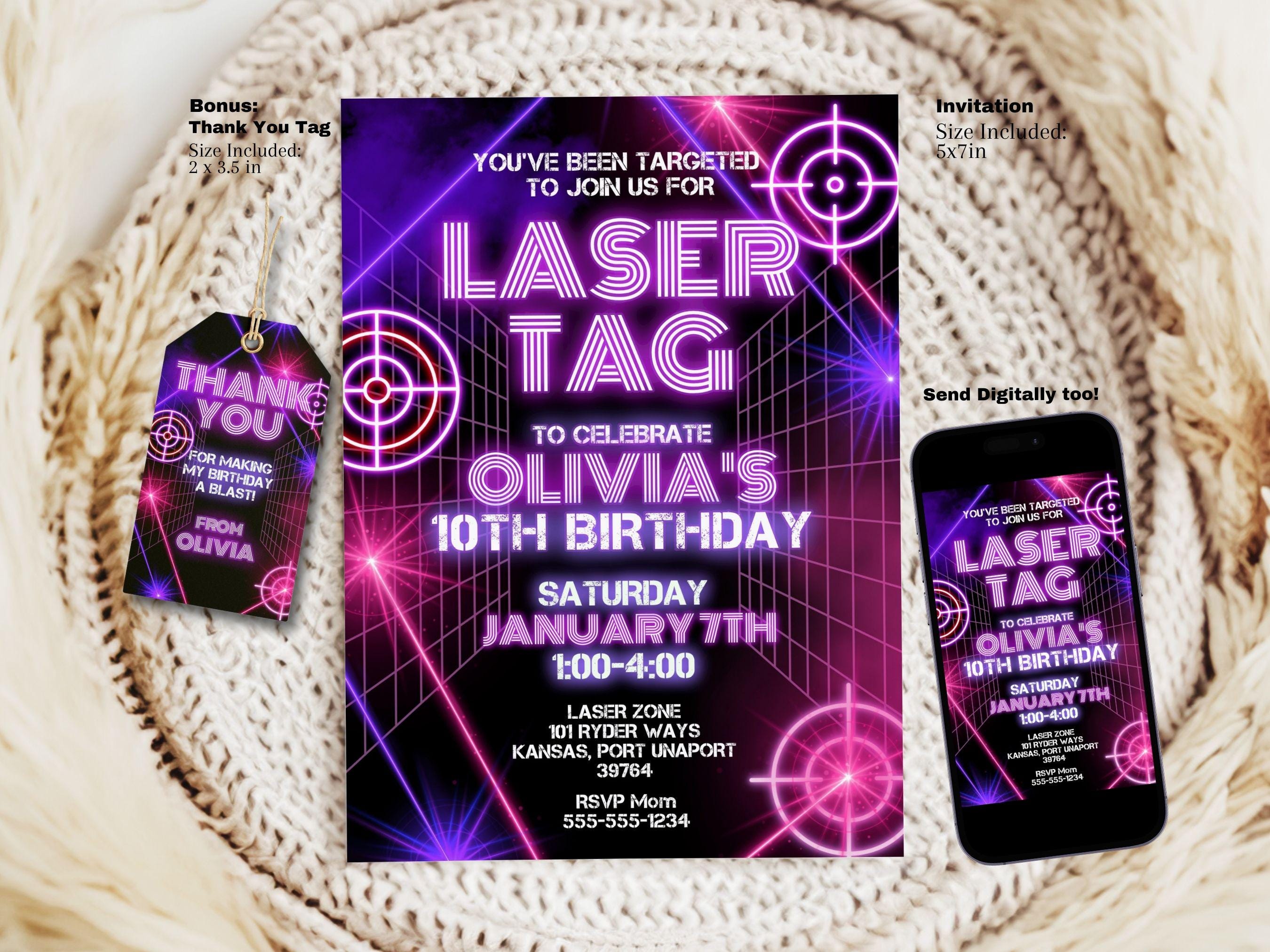 Neon Laser Tag Birthday Invite, Laser Tag Invitation, Glow Laser Tag ...