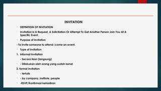 Invitation: 1. Definition 2. Purpose 3. Generic Structure 4. Example | PDF