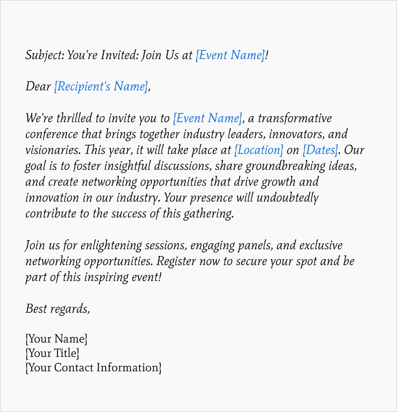 Free Business Conference Invitation Email Letter Template to Edit Online