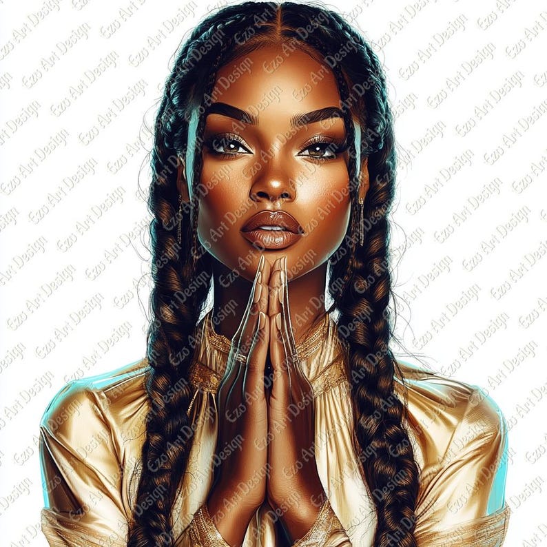 Black Woman Clipart, African American Art, Melanin Prayer Clipart - Etsy