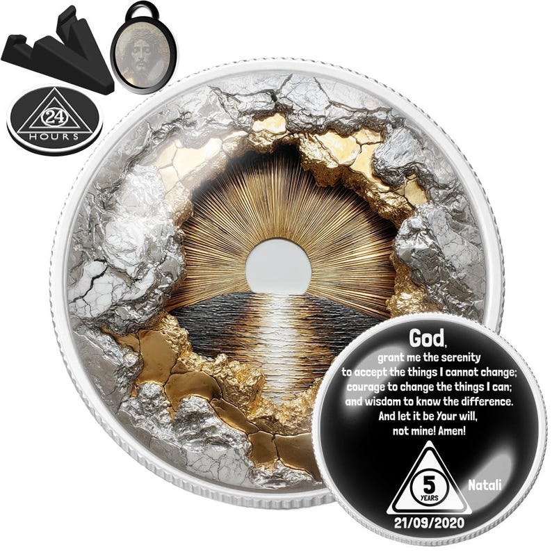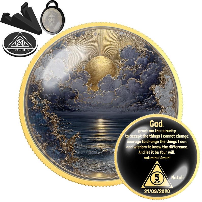 Wave Sobriety Coin Gold Silver, Sea Recovery Chip Gift, AA NA Sober ...