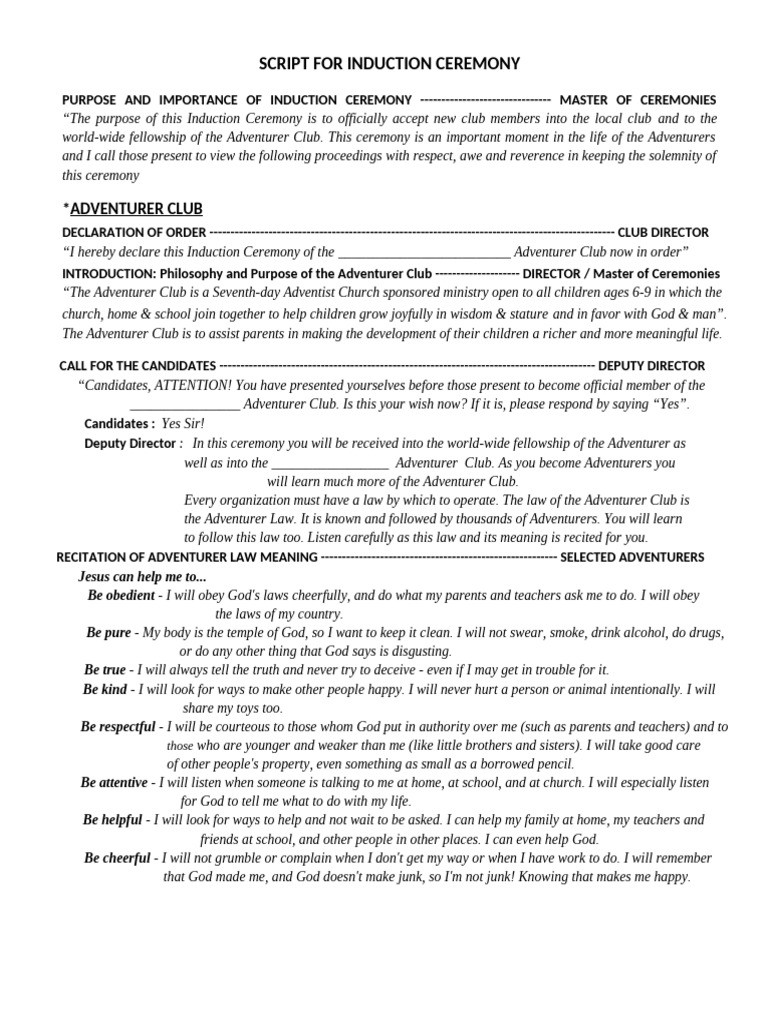 Updated - Script For Induction Ceremony | PDF | Prayer | God