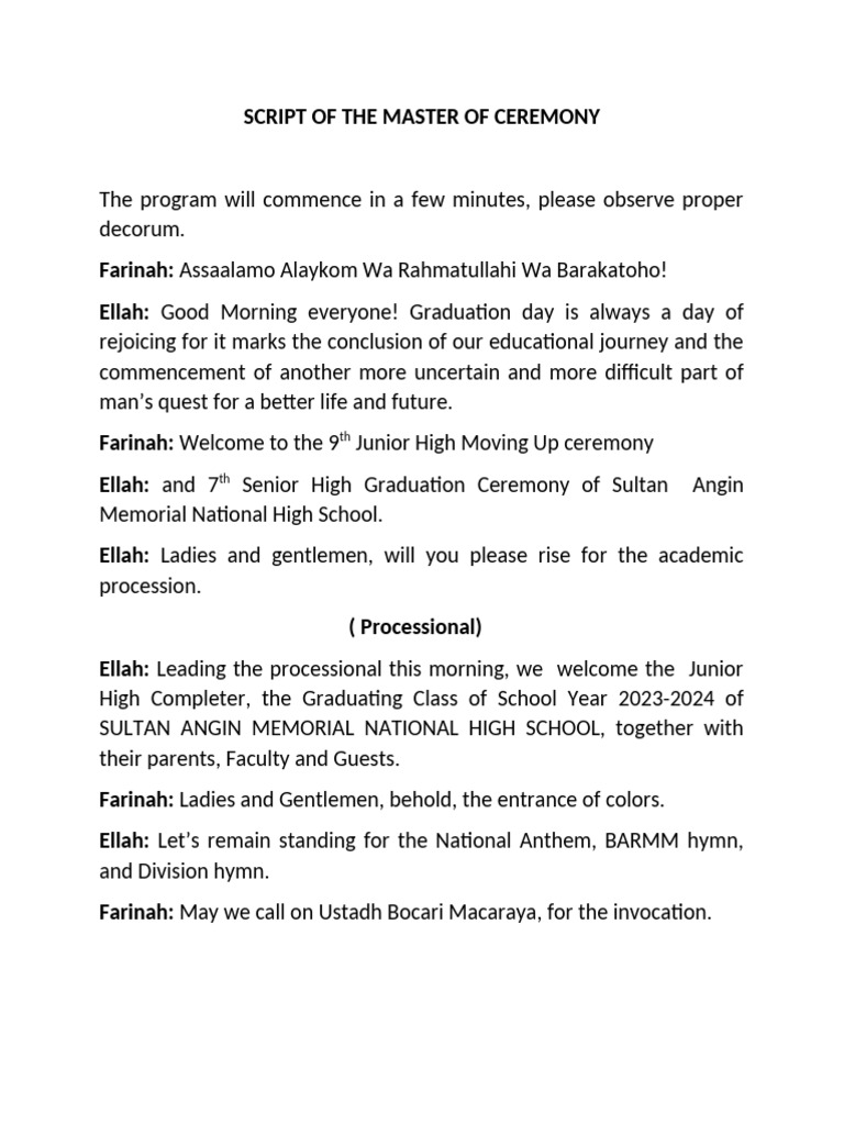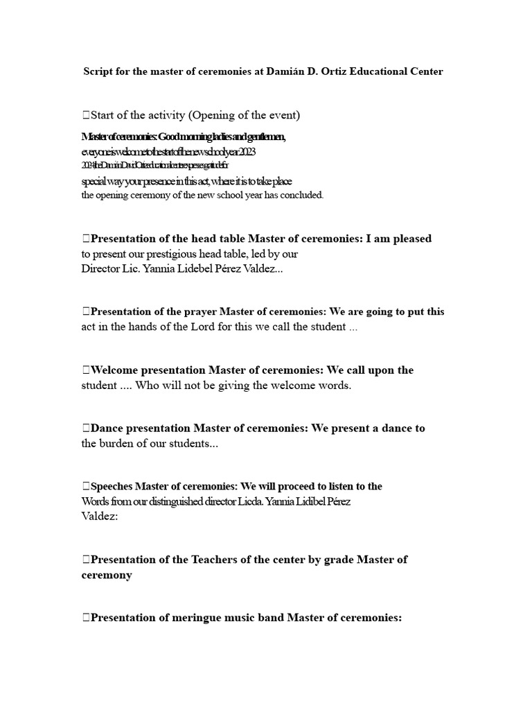 Sample Script For Master of Ceremonies | PDF