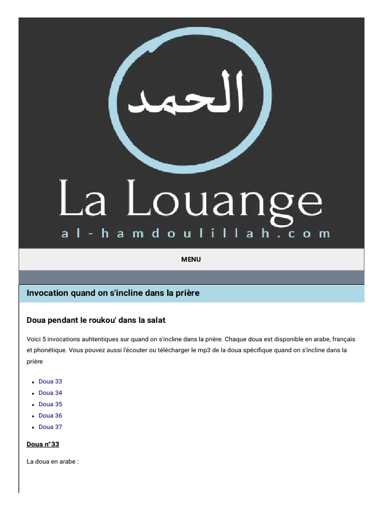 Invocation Quand On S'incline Dans La Prière | PDF | Charia | Religions ...