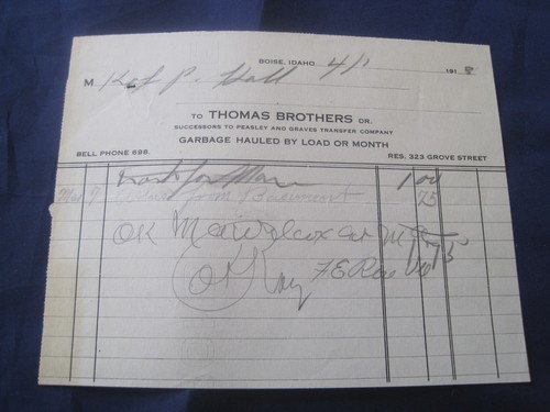 Thomas Brothers Garbage Invoice w/ Watermark for Knights of Pythias ...