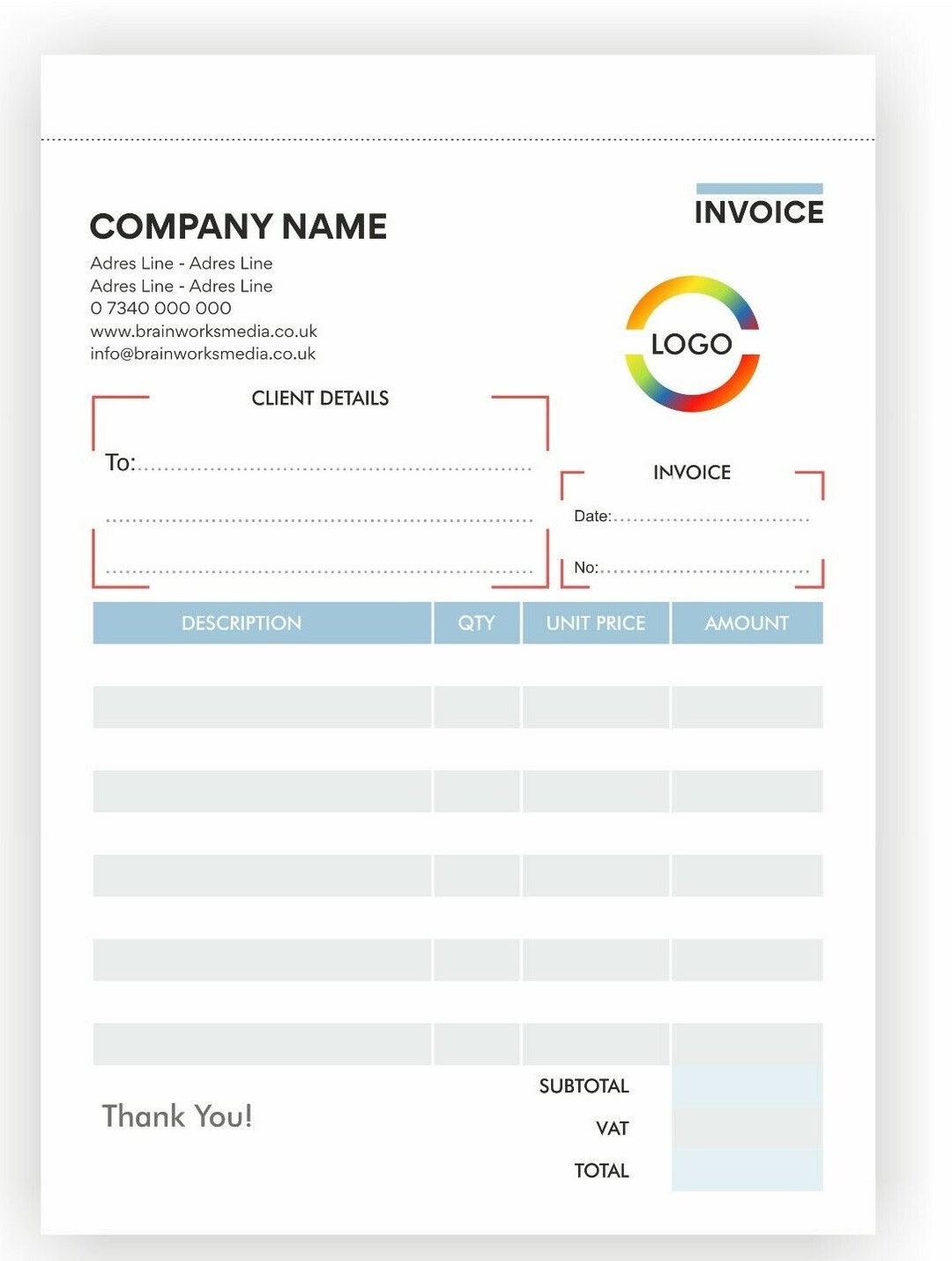 Invoice Duplicate Book - 1 to 100 Numbered Pages - Full Invoice Layout ...