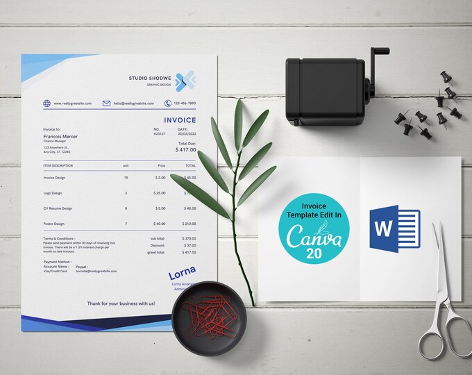 Editable Invoice Template: Printable Small Business Form (canva Digital ...