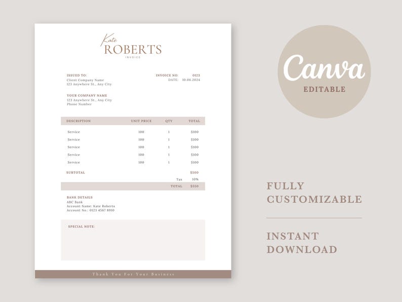 Minimalist Invoice Template - Editable Billing Form for Freelancers - Etsy