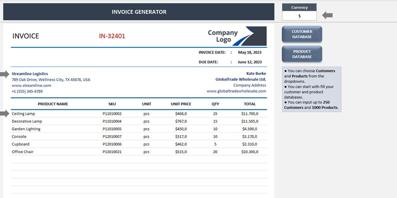 Invoice Generator Excel Template: Invoice Maker, Business Spreadsheet ...