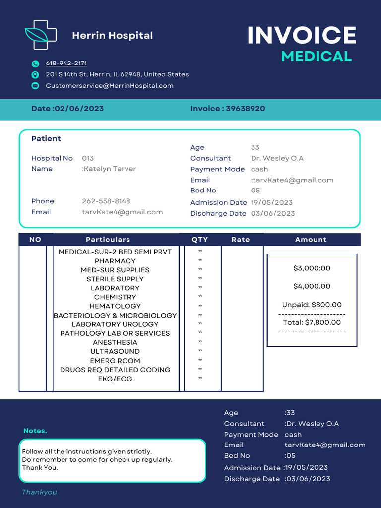 Kate Medical Invoice | PDF | Social Programs | Medicine