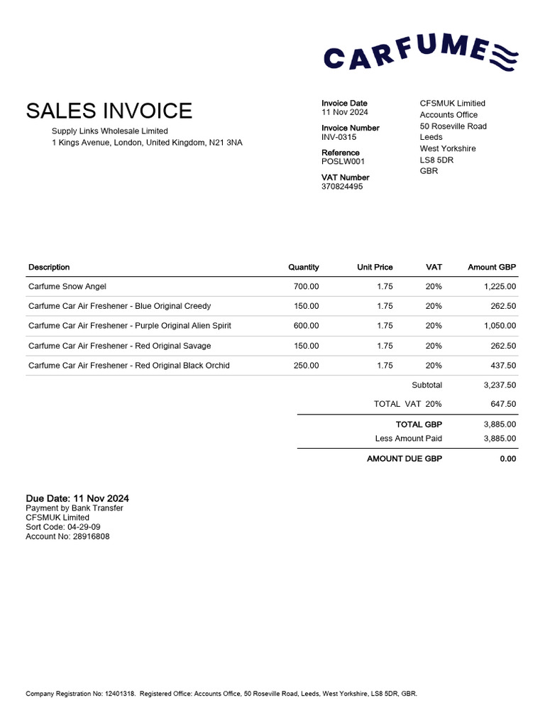 Carfume Invoice and Payment Details | PDF | Invoice | Value Added Tax